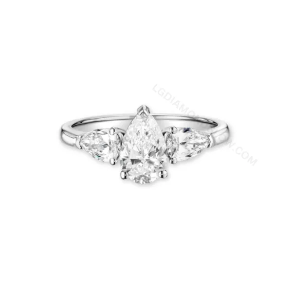 הפרופיל העשיר והמרשים של הטבעת מחמיא לאצבע. המעבר הרך בין שלושת היהלומים יוצר תחושה של תנועה מתמדת, כאשר יהלומי הטיפה הצדדיים נראים כמו שני טיפות מים המלוות את יהלום הטיפה המרכזי. הקווים הרכים והזורמים של היהלומים מתמזגים זה בזה ויוצרים הרמוניה מושלמת.